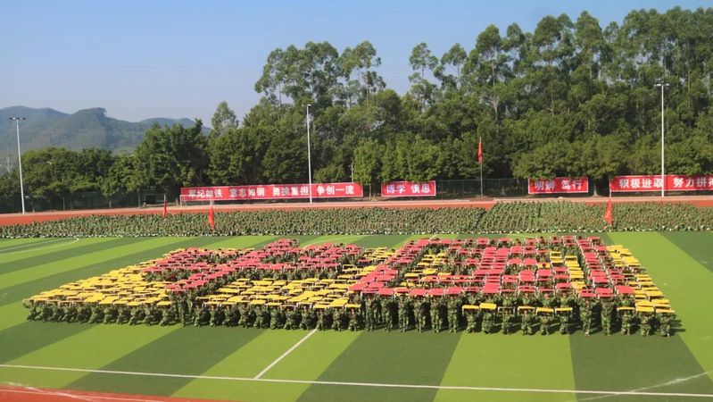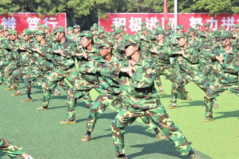 他们昂首挺胸,意气风发,步伐整齐,口号嘹亮;军体拳动作精练,刚柔并济,体现了他们坚忍不拔、勇敢顽强的战斗作风;匕首操的一招一式,有如行云流水般一气呵成;挥棍有力,气势恢弘,豪情志气难掩,直现短棍术的慷慨凛然;擒敌拳的他们不畏强敌,勇往直前,腿脚如风,拳法凌厉;面对“歹徒”,他们冲锋陷阵,持枪前进反恐的他们英姿飒爽;花样方阵不断变换的图案,表达着华广学子,对祖国,对学校的热爱。
