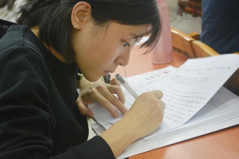 严肃的参赛氛围让人不愿打破,行云流水的笔划和整洁的布局令人赏心悦目。在这个艺术赛场上,选手们的满腹才华化成字字珠玑,尽跃纸上。他们坐姿端正,全神贯注地写下一笔一划。