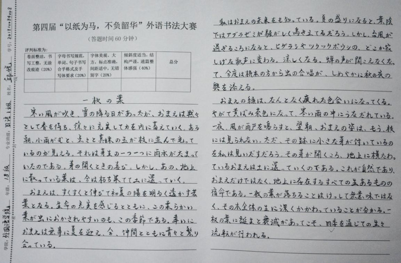 评比结果正式揭晓,31位选手的优秀作品受到老师们的一致好评。让我们一起走进外国语学院语言技能实践系列活动之第四届“以纸为马,不负韶华”外语书法大赛,融入优秀选手们的内心世界,领略他们笔下书法所蕴含的美吧!