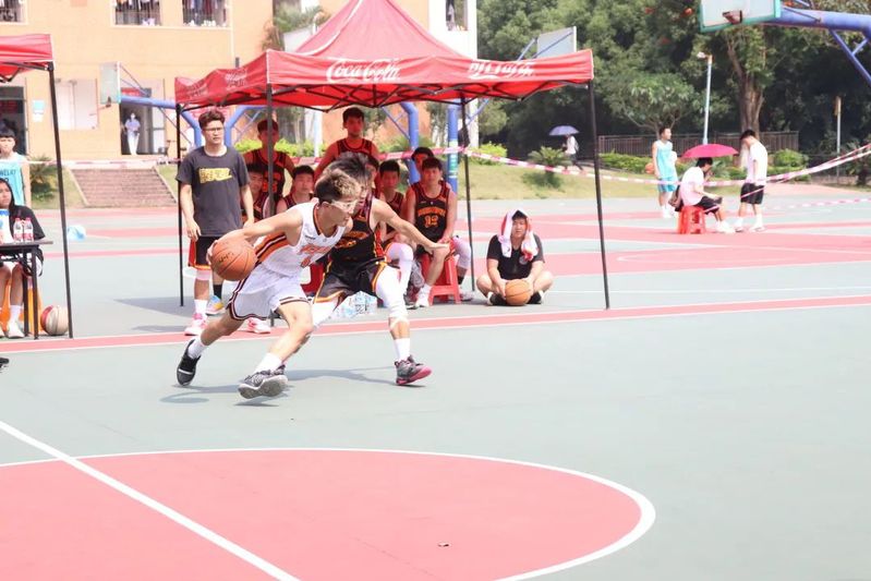 下半场刚开始,外院球员便以默契的配合,突围至对方篮下,但可惜被管院一队球员抢断,失去得分机会。但我方同样不甘示弱,在管院一队球员突围至我方篮下时,外院球员抓准时机,一记“火锅”封盖,将篮球击至场外,阻断了管院一队球员的攻势,令在场观众热血沸腾。比赛到了尾声,双方更是节目效果拉满,互飙三分。哨声再次响起,比赛结束,外国语学院队惜败管理学院一队。
