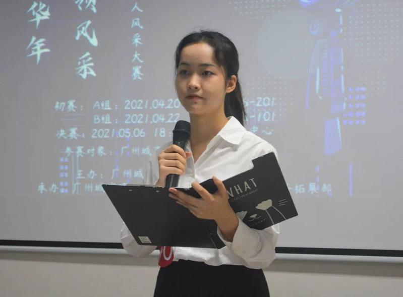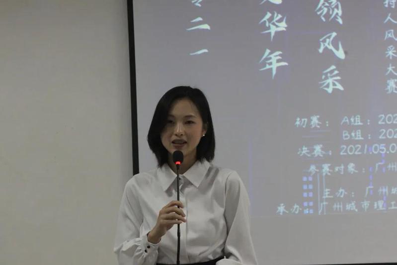 本网讯(记者:钟舒茵 冯思悦 李晓琳 钟洁滢)4月20日晚,广州城市理工学院外国语学院2021年“锦瑟华年,话领风采”主持人风采大赛初赛A组在A6-501举行。青春因梦想而绽放,梦想因舞台而飞扬,在这样一个美丽的季节,让我们放飞梦想,在这个舞台上共同见证青春奇迹。
