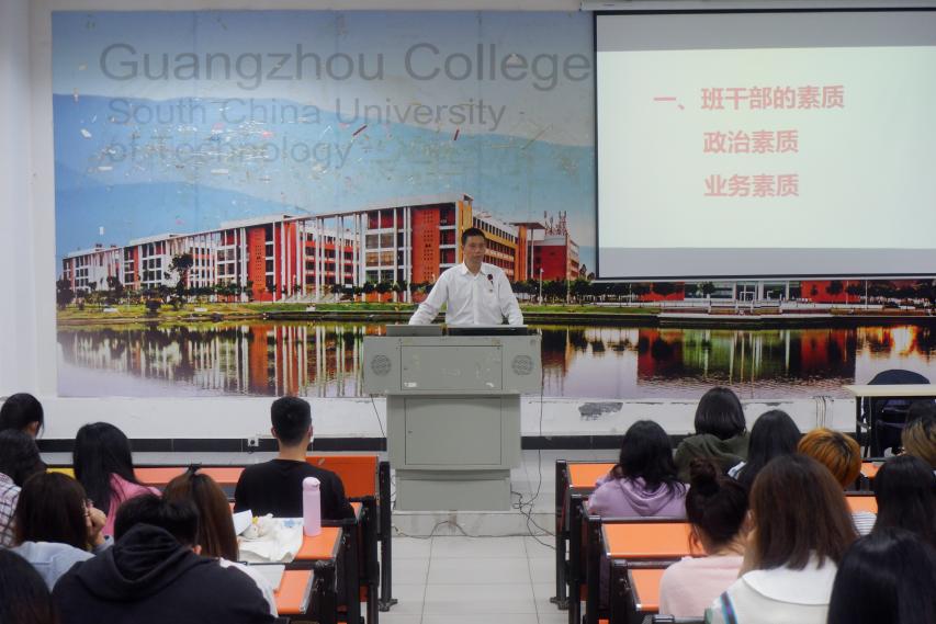 接着,张四友书记为同学们开讲了一堂非常生动且意义重大的党课。张书记主要从以下三个方面进行讲述:一是班干部的素质如何得以提升;二是班干部如何练就强国能力;三是班干部如何学好党的基本知识。面对在座的大三学子,张书记强调“你们不一样”,班干部是班级和年级的带头人;入党积极分子是学生中的优秀分子,具体就是八个字“立志、成才、考研、入党”,他希望2019级班干部同学立志考研,入党比例较上一年级有大幅度提升。各班要确立目标,落实到人,跟踪指导,学院将采取一切措施助力学生实现考研的目标。