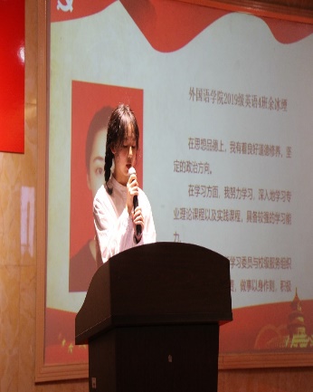 学生第一党支部共有18位候选人,她们依次上台分别从思想、学习和我为群众办实事等方面简明扼要地阐述自己的个人情况。思想上,她们都深刻了解国内外形势,分享了近期党史学习的心得体会;学习上,她们成绩优异,积极参加各类比赛,明确了将来考研和就业方向;我为群众办实事方面,她们踏实能干,积极参与各种社会实践活动和志愿服务活动,具有丰富的工作和实践经历,真正做到为群众办实事。对于自身存在理论知识学习不足,理论与实践结合度不高的问题,她们表示会利用多种途径深入学习党的理论知识,多参与到实际活动当中去。随后,各发展对象的入党介绍人为她们提出宝贵建议。