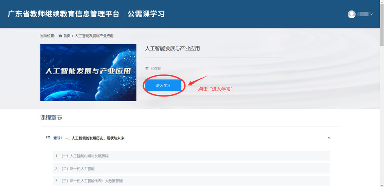 4、浏览课程章节列表,点击【选择课程】,选定此课程
