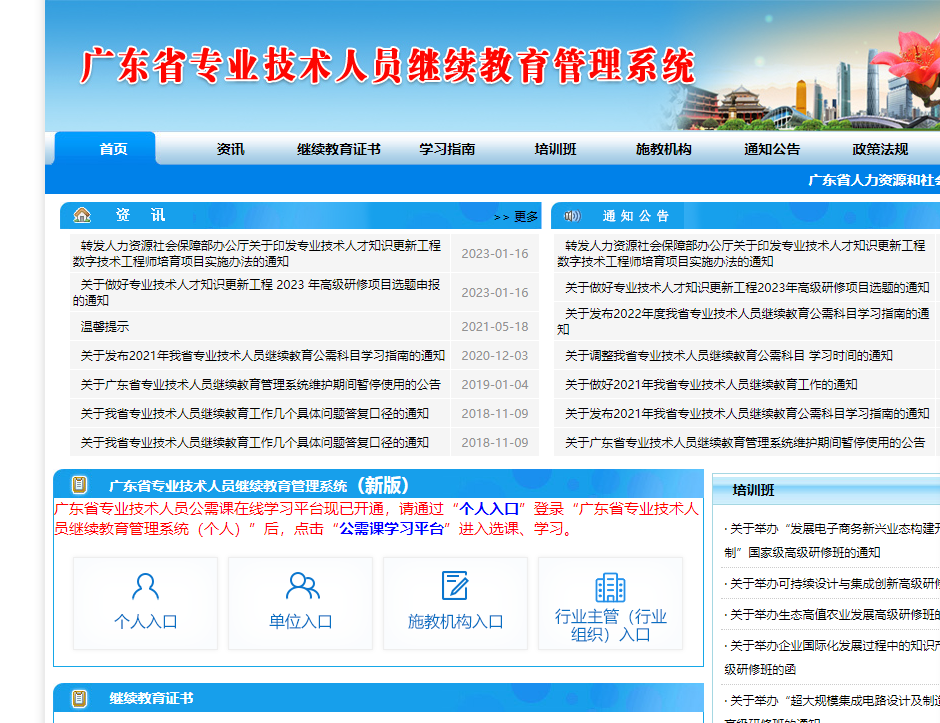 广东省专业技术人员继续教育管理系统(简称:专技网)用于继续教育证书生成及打印。未开通账号的老师请自行注册账号后,联系人事处进行审核;