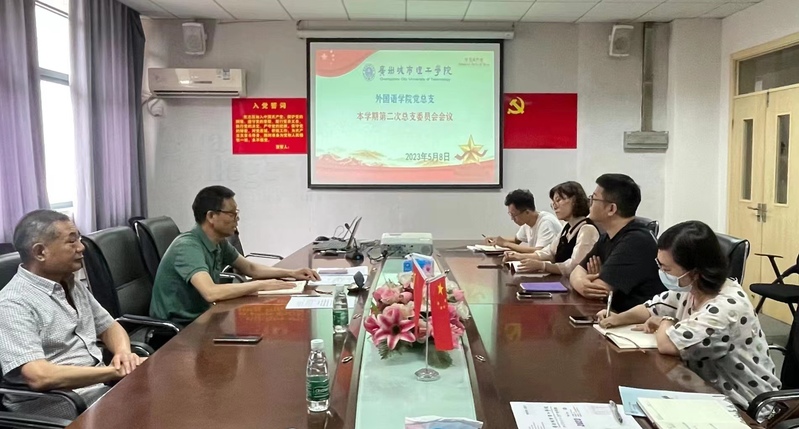 本网讯(记者黄海燕)5月8日中午,外国语学院党总支在A6-214召开学习贯彻习近平新时代中国特色社会主义思想主题教育工作布署会议。学院党总支书记张四友、院长向前进,及全体总支委员参加了本次会议。