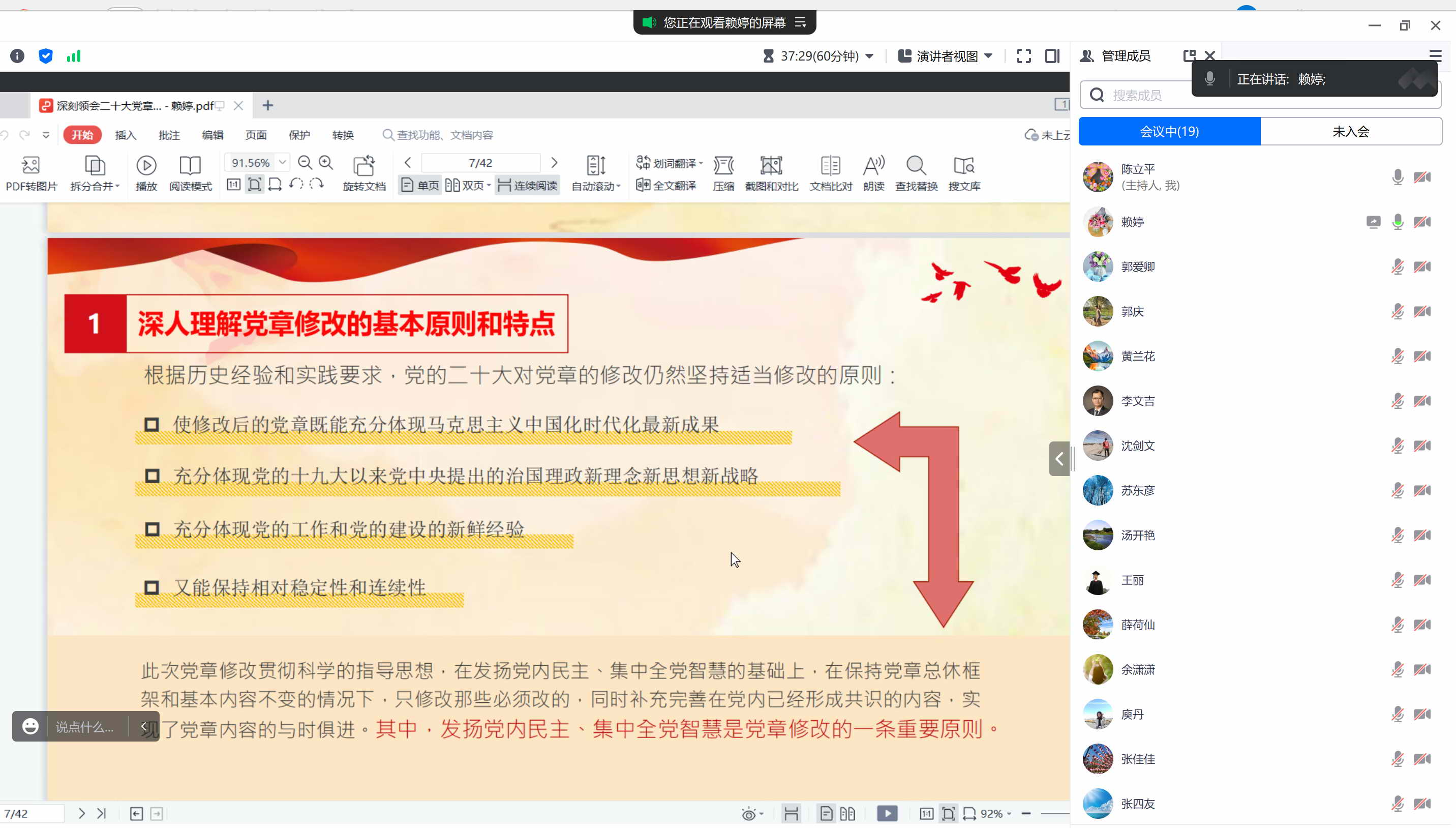 首先,支部书记陈立平同志强调党章作为党的根本大法,是全党意志的集中体现。相对于其他党内法规而言,党章最集中又最权威地体现了党的整体意志、利益及共同理想,是党的建设和全部活动的基准。二十大党章的修改,做到按照民主集中制的要求,将党员意志上升转化为全党概括性、抽象性、整体性的共同意志。