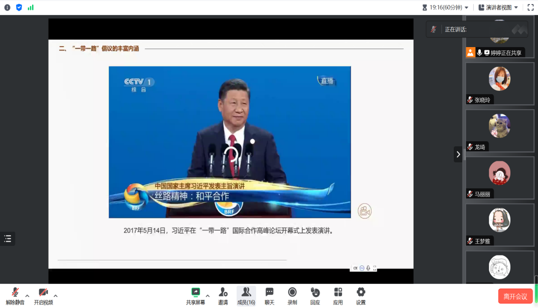 接着,徐书记带领大家从五个方面详细学习了“一带一路”倡议的丰富内涵。首先,“一带一路”建设离不开和平安宁的环境,要坚持对话而不对抗、结伴而不结盟的原则,维护地区和世界和平稳定;其次,“一带一路”建设要促进经济合作、贸易畅通、资金融通、民心相通,为沿线各国人民带来实实在在的利益;第三,“一带一路”建设要坚持开放包容、互利共赢的理念,不打地缘博弈小算盘,不搞封闭排他小圈子;第四,“一带一路”建设要以创新为动力,推动科技创新、制度创新、文化创新等多领域合作;最后,“一带一路”建设要以文明为纽带,推动文化交流互鉴、文明共存共荣。
