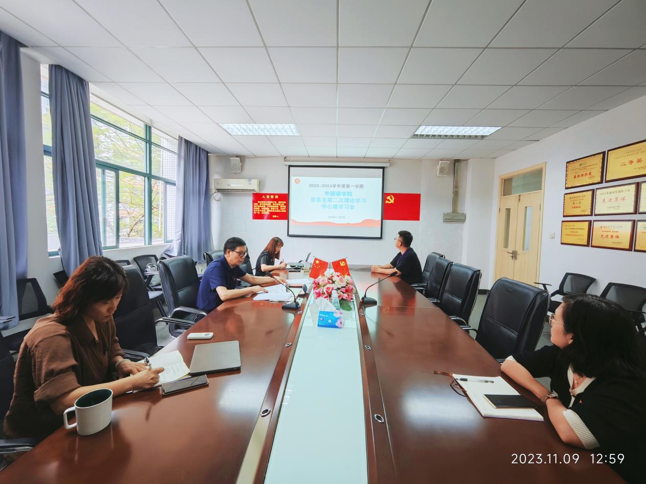 本网讯(记者 李彩兰)按照主题教育要及时跟进学习习近平总书记最新讲话指示的要求,11月9日上午,外国语学院党总支理论学习中心组在A6-214召开集体学习会,专题学习习近平总书记在中共中央政治局第九次集体学习时的重要讲话精神。