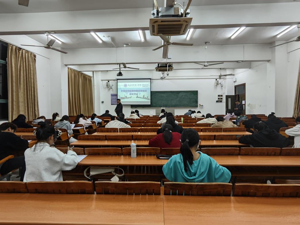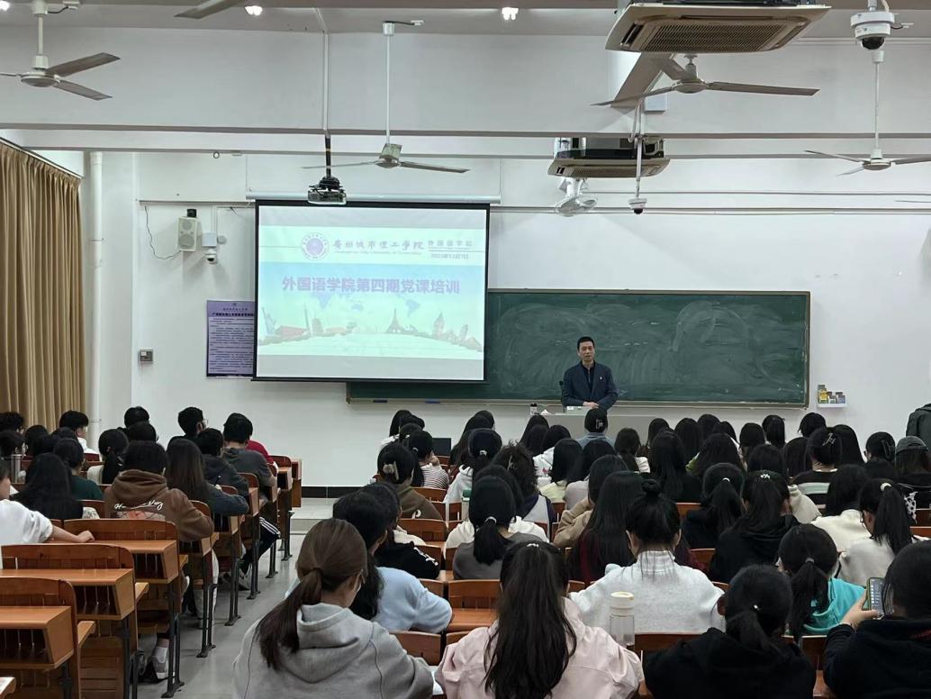 本网讯(记者李彩兰、马子呈)为了进一步增强入党申请人和入党积极分子的理论素养,健全和扩大党员后备队伍队伍,外国语学院分党校于2023年12月7日晚上在A5-202开展了第四期党课培训。外国语学院党总书记张四友教授、学工办辅导员和近100名入党申请人和积极分子参加了此次培训。