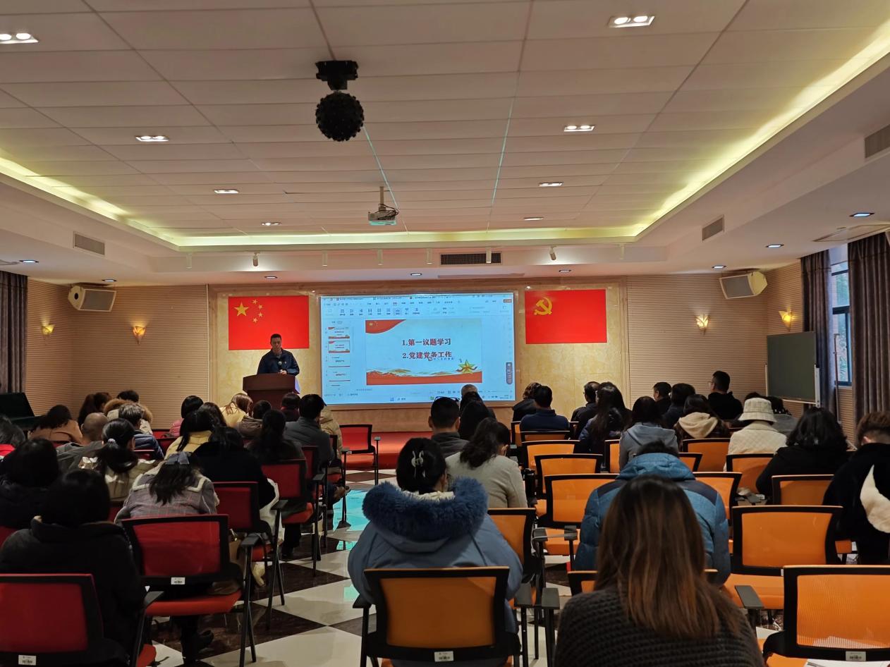 本网讯(记者 李彩兰)新学期伊始,为全面贯彻二十大精神,深入学习习近平新时代中国特色社会主义思想,落实党的教育方针,加强党的建设,2月29日下午,外国语学院党总支在A6-201会议室召开新学期全体党员大会。学院院长钟书能、书记张四友、副院长乔世燕以及全体党员和教职工参加了本次会议。
