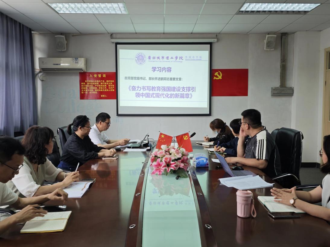 随后,与会人员围绕学习教育主题展开了讨论。大家一致认为,教育强国建设是推动国家发展的重要支撑,外国语学院作为培养外语人才的重要基地,更应当肩负起历史使命,为培养德智体美劳全面发展的社会主义建设者和接班人贡献力量。在讨论中,与会人员还就如何加强思想政治教育、提高教育教学质量、推进国际交流与合作等方面提出了具体的意见和建议。大家纷纷表示,要以此次学习会为契机,进一步加强理论学习,提升业务水平,为学院的发展和国家的教育事业贡献自己的力量。