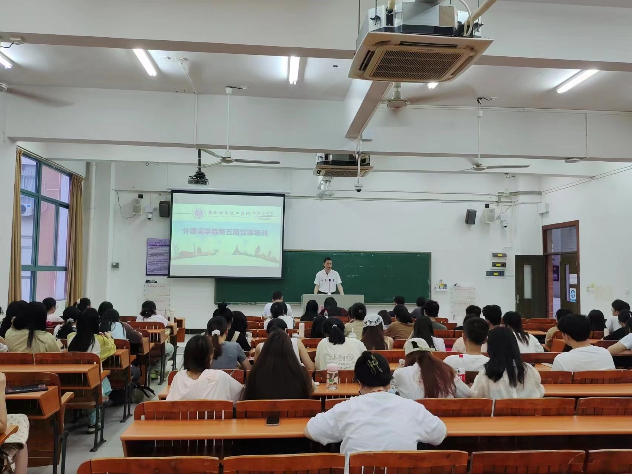 本网讯(记者 李彩兰、梁樱琪)为做好党员发展工作,加强对入党申请人和入党积极分子的培养和教育,坚定入党信念,端正入党动机,外国语学院分党校于2024年5月9日晚上在A5-202开展了第五期党课培训。外国语学院党总书记张四友教授、党总支组织委员李齐政老师、学工办副主任袁善福老师、党务中心指导老师李彩兰和近70名入党申请人和积极分子参加了此次培训。