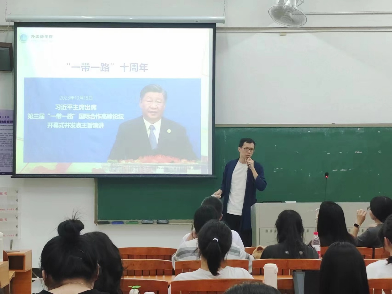 在党课培训的第二项内容里,党总支组织委员李齐政老师以精湛的讲解技巧和深刻的洞察力,带领同学们进行了一场引人深思的时事政治学习。本次学习的内容聚焦于2024年上半年的重大国际事件,旨在让同学们更加了解当前世界的复杂局势,并引导他们思考国际关系的发展趋势。李齐政老师以生动的语言和层层递进的叙述,将一系列国际热点事件逐一呈现给同学们。首先,他回顾了“一带一路”倡议十周年的发展历程,强调了这一倡议对于促进国际经济合作和文化交流的重要意义,我国的国际地位和影响力不断提升和加强。接着,他详细讲述了以巴冲突和俄乌战争的最新进展,分析了这些冲突背后的地缘政治因素和各方势力的博弈。此外,他还提到了全美反以大游行等事件,揭示了国际社会对于某些问题的关注和不满。在讲解过程中,李齐政老师不仅提供了丰富的信息和数据,还引导同学们进行深入思考和讨论。他鼓励同学们从不同角度分析问题,探讨国际关系的复杂性和多样性。