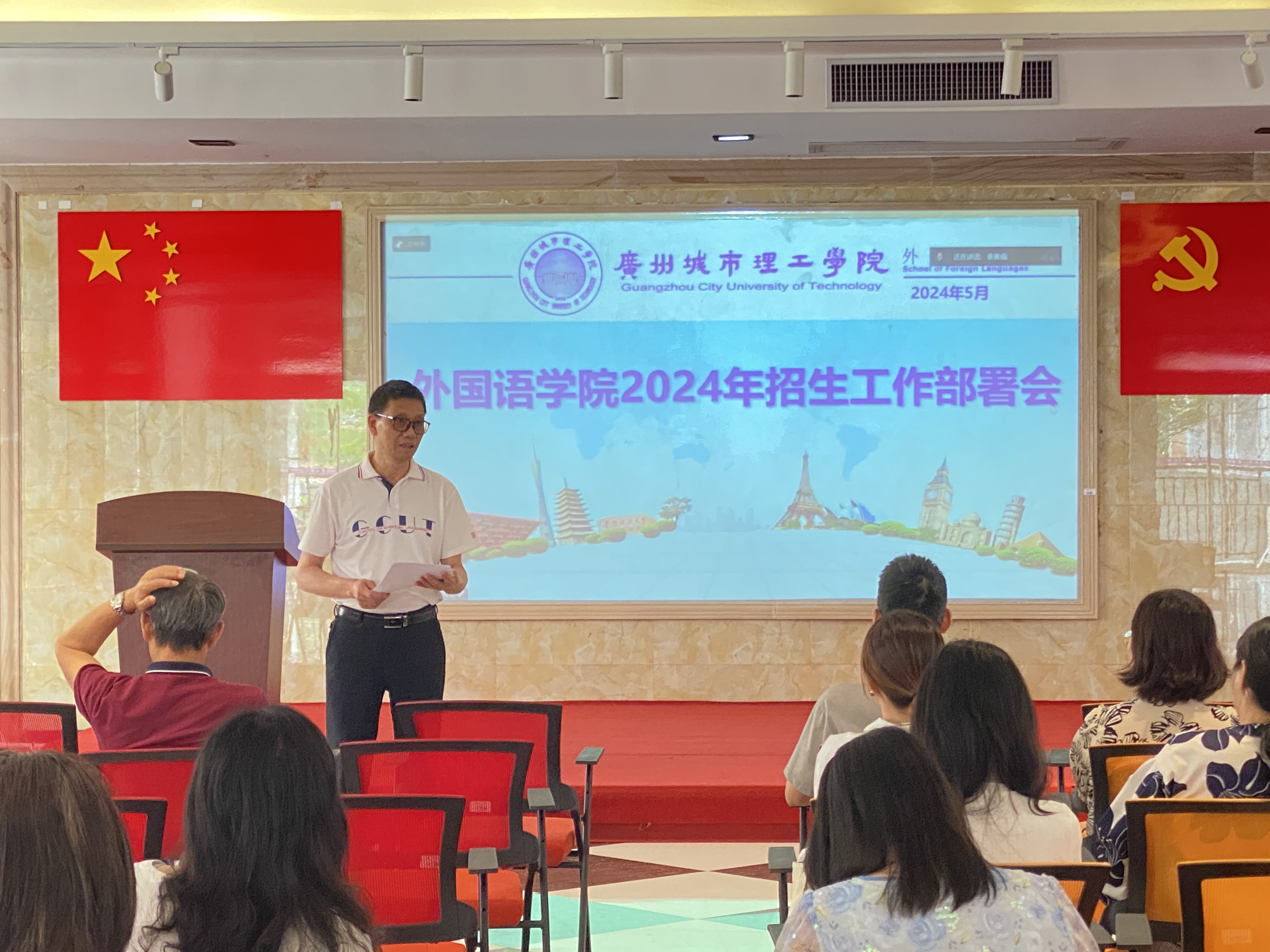 本网讯(记者 袁善福、罗曼)为了确保外国语学院2024年招生工作的有序开展,持续推动招生工作的高质量发展,5月14日学院在A6-201召开2024年招生宣传工作部署会。学院院长钟书能、党总支书记张四友、副院长乔世燕、各部门的负责人、招生工作人员及全体班主任参加会议。会议由学工办副主任袁善福主持。