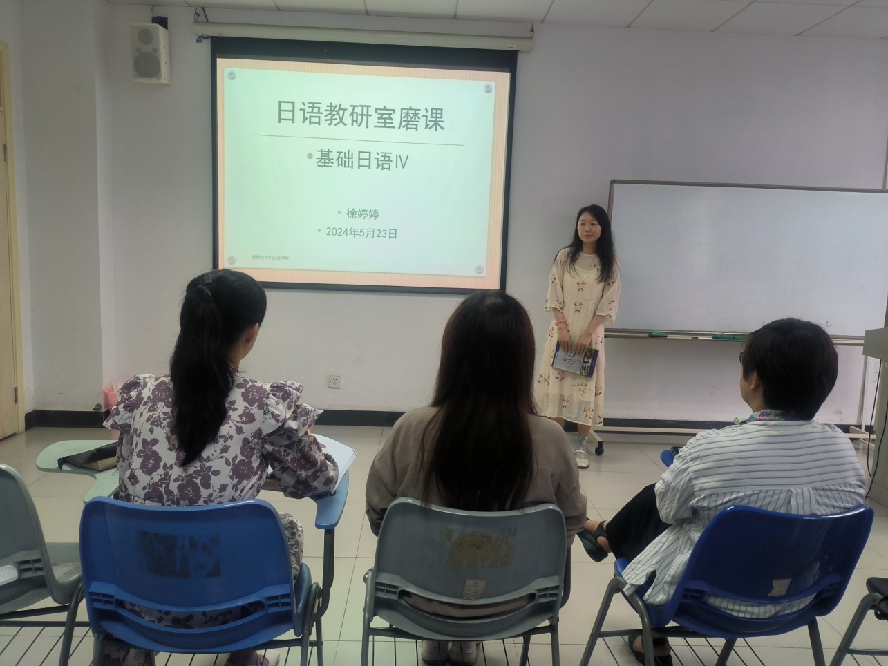 英语教研室在A6-213进行了说课、磨课教研活动,教研室副主任叶玉珊副教授主持活动,广东培正学院张丽君副教授担任磨课专家,青年教师刘诗琴、龙琦、王梦雅、赵亮分别就高级英语II、英语语法与写作IV、英语阅读III和翻译理论与实践这四门课进行了精彩说课,他们把自己的教学设计、教学理念、思政融入和课程反思做了精彩分享。张丽君副教授、朱湘军教授、陈立平教授、相关任课教师进行了共同研讨。