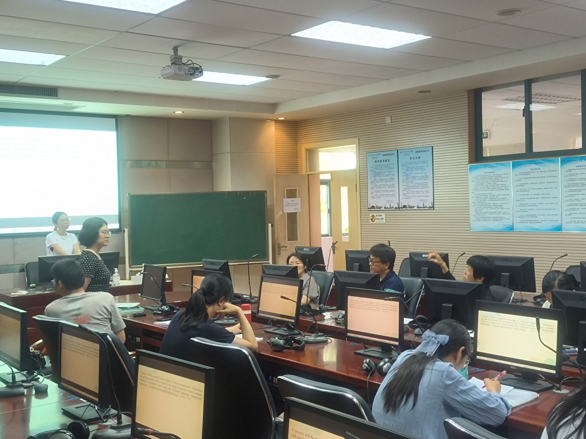 商英教研室磨课现场2-周肖儿正在说课(赖婷 摄)