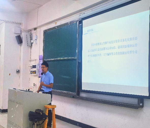 本网讯(记者姜洪良、叶玉珊)为促进英语专业高质量人才培养,5月23日下午,英语系召开2022级分专业方向动员大会暨微专业(新媒体运营)说明会。出席本次会议的有外国语学院英语系副主任叶玉珊、姜洪良,管理学院大数据管理与应用系副主任周智伟和教师代表欧琳露,以及2022级英语专业全体学生。