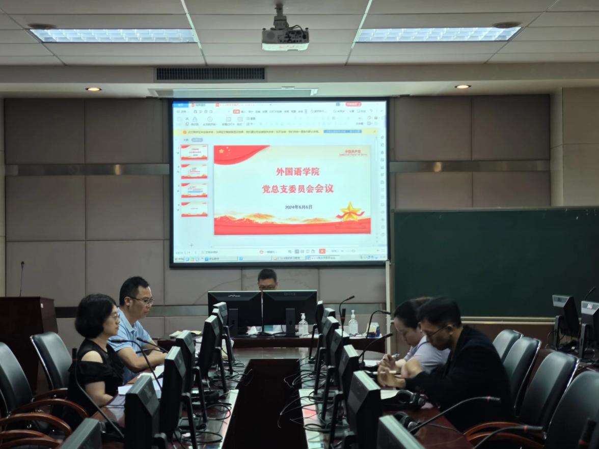 本网讯(记者 李彩兰)6月6日下午,外国语学院党总支在A6-213召开总支委员会会议,通报预备党员转正事宜,传达上级文件精神,以及学校党委组织部对我院补选总支委员和学生党支部调整及补选委员结果的批复。