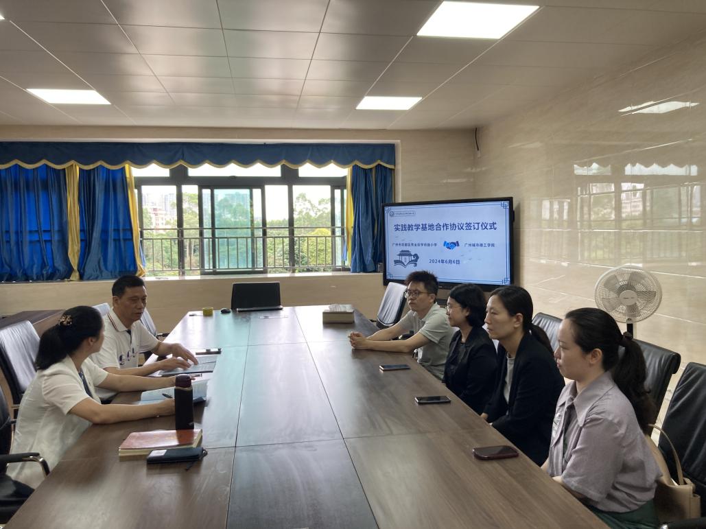 本网讯(记者 叶玉珊)6月6日,外国语学院党总支书记兼副院长张四友携同学院各部门主要负责人一行6人,到访广州市花都区秀全街学府路小学,深入探讨并协商共建实践教学基地的合作事宜。学府路小学对此次访问给予了高度重视,校长钟丽华、副校长骆朋威以及教导处副主任聂小燃共同出席了座谈会。