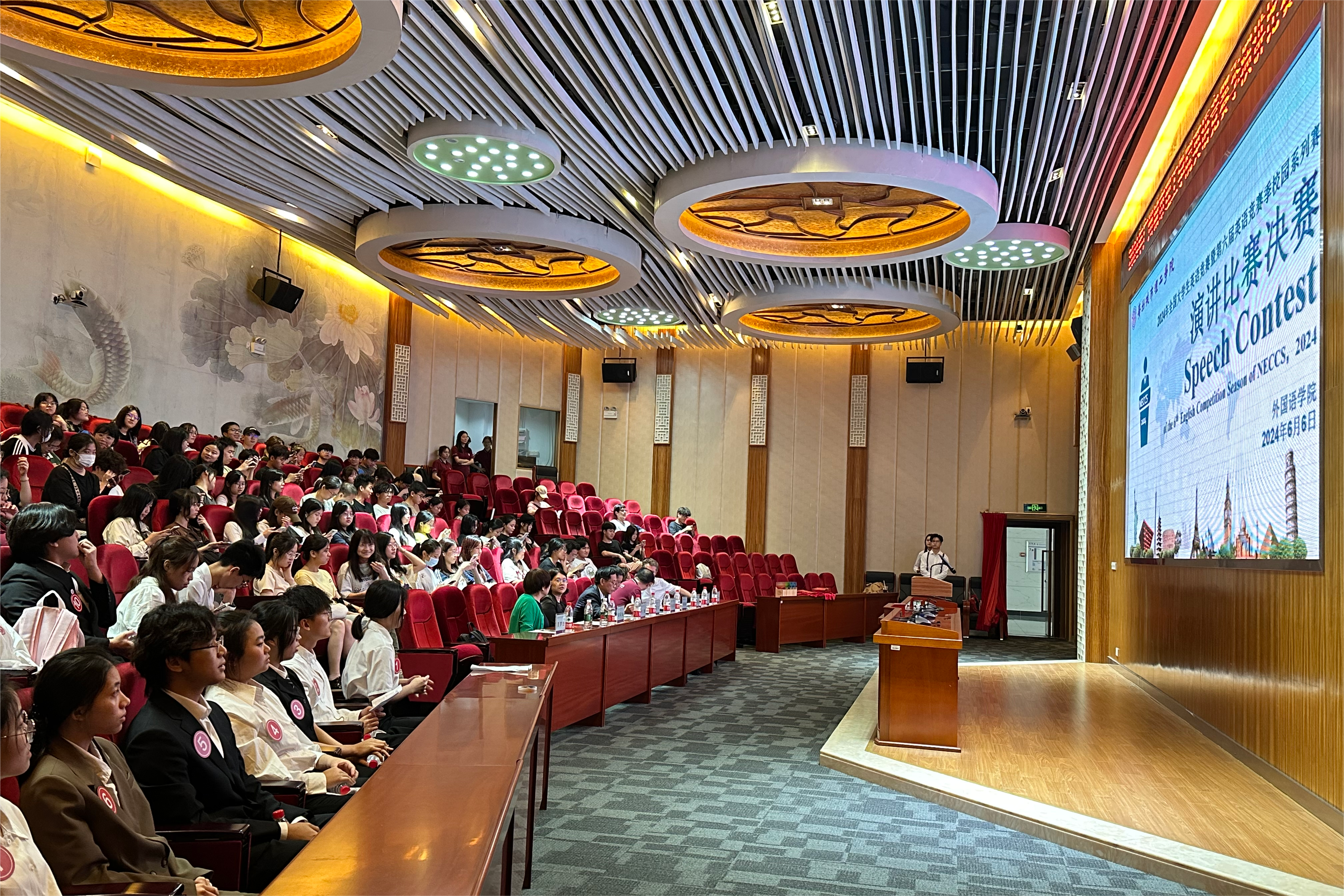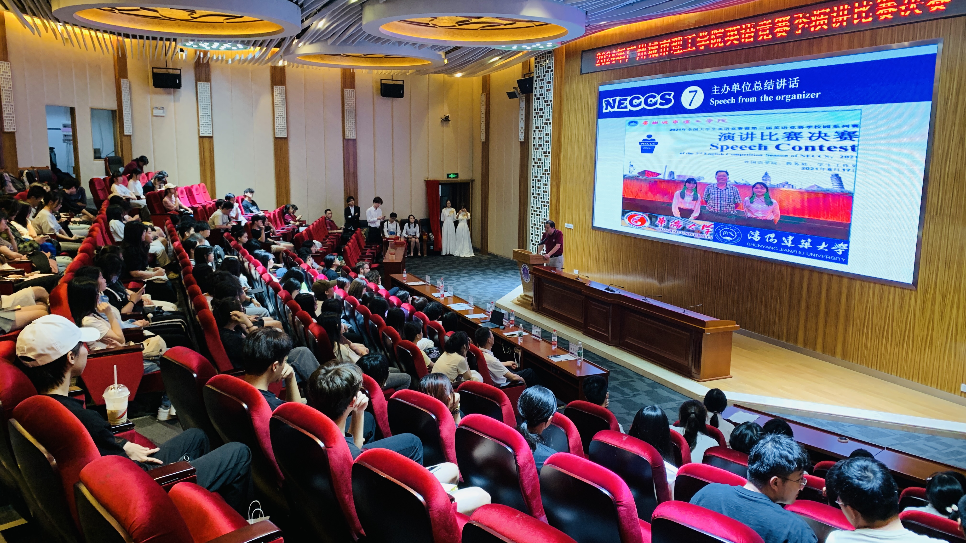 刘洊波用英文致辞,他表示:“随着现代社会的发展,我们既要根植于民族文化的土壤、又要具有开阔的国际视野。英语是我们和国际交流的一个重要的语言工具,作为新时代的大学生,我们责无旁贷,不仅要学好自己的母语,也要提高英语水平。这有利于我们提升国际传播能力,讲好中国故事、传播好中国声音,向世界展现真实、立体、全面的中国,为提高国家文化软实力和中华文化影响力做贡献。”