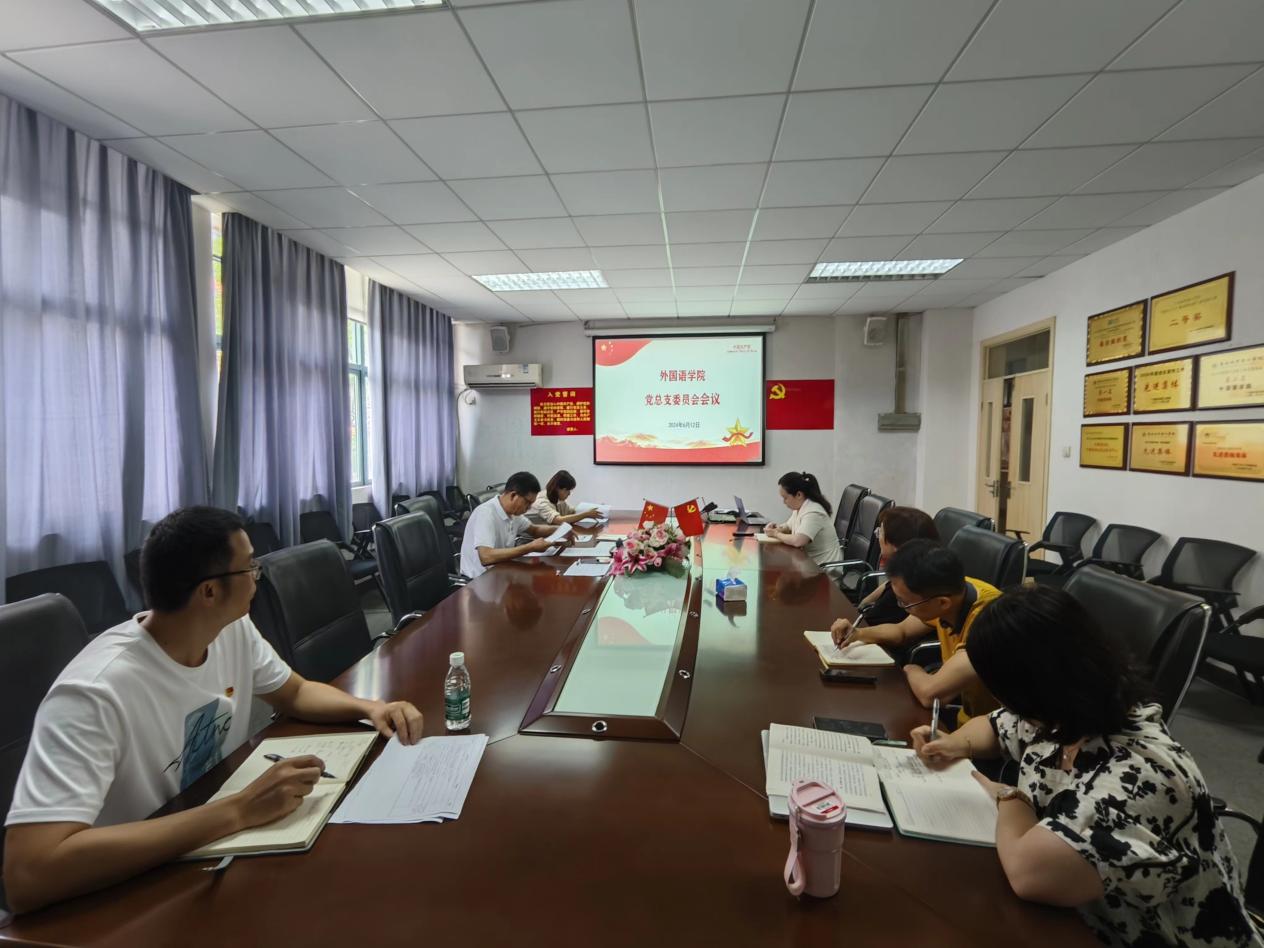 本网讯(记者 李彩兰)6月13日下午,外国语学院党总支在A6-214召开总支委员会会议,深入学习贯彻习近平总书记关于学校思政课建设的重要指示精神,同时就学院政治安全、意识形态教育、议事规则以及学院招生就业工作进行了全面部署和讨论。