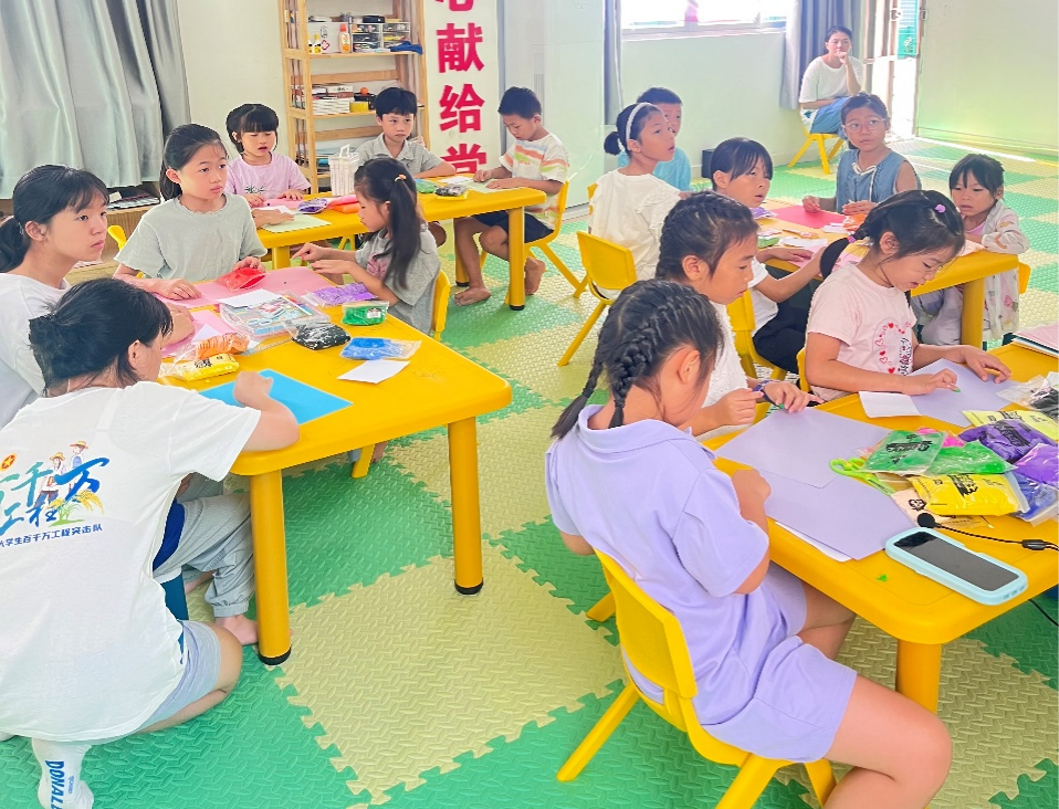 本网讯(记者 豆芹兰 方映纯 温喜娇 李浣淇)为推动县镇村高质量发展,服务全面推进乡村振兴,城理学子积极响应“百千万工程”的号召,投身社会大课堂,促进九潭村外来务工子女德智体美劳全面发展,广州城市理工学院外国语学院组建的共建“幸福九潭”实践团(以下简称实践团)于7月15日至7月29日在广东省广州市花都区秀全街九潭村开展为期15天的暑期三下乡美育课程支教活动。