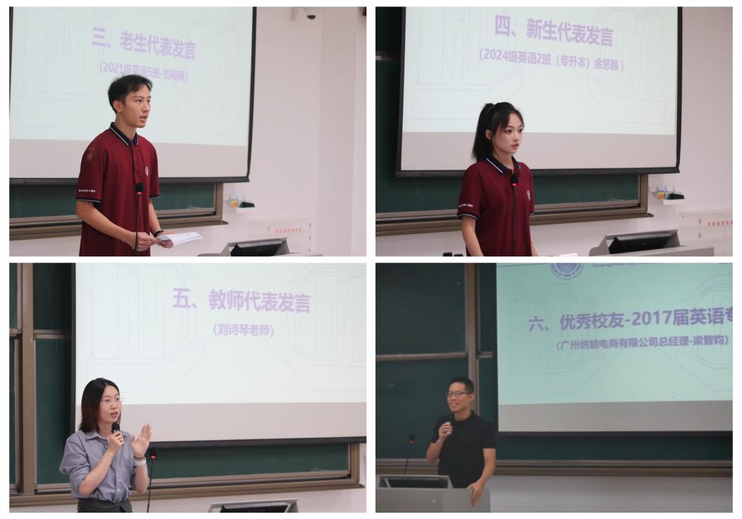2017届英语专业的梁智钧师兄作为优秀校友代表的发言则带来了学院传统与创新精神的传承,分享了在学院学习期间的宝贵经验和毕业后的职业发展,激励新生们在学院的平台上不断进步,实现个人梦想。