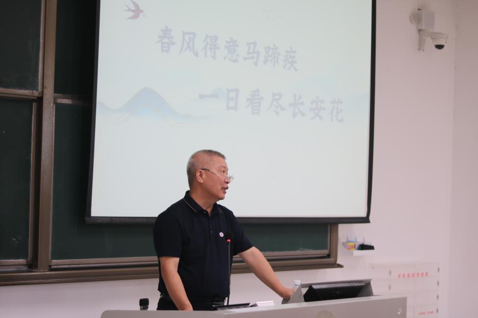 最后,钟书能院长发表了热情洋溢的致辞,对新生们的到来表示热烈的欢迎,从本届新生的分布,历届的升学考研数据开始,介绍了学院的教育理念、师资力量、教学资源等方面。钟院长强调了培养新时代背景下外语人才的重要性,鼓励新生们在学院的学习和生活中不断探索、勇于创新,并祝愿2024级新生们在未来的学习生活中取得丰硕的成果。