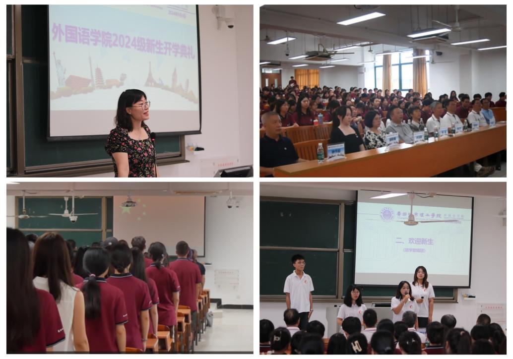 本网讯(记者 李齐政 张家燕)2024年9月4日,外国语学院在A5-401举行了2024级新生开学典礼。外国语学院院长钟书能、学院党总支书记张四友、副院长乔世燕以及学院部分教授、教师代表参加了典礼;一同参加的还有2024级全体新生。