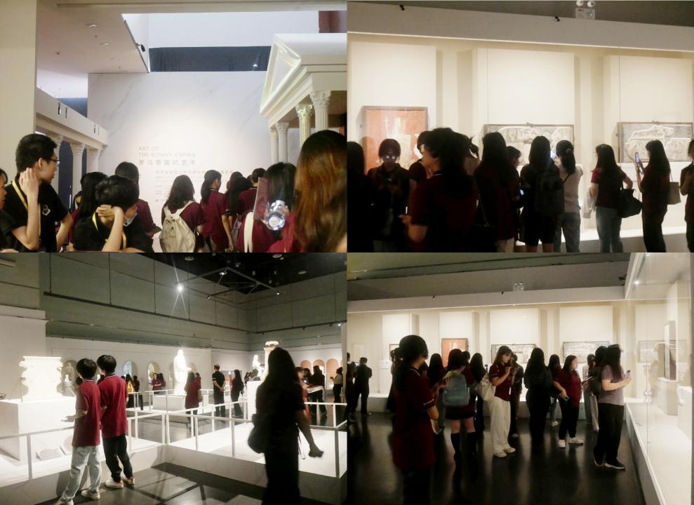 师生们有序进馆后,首先参观了位于三楼的“罗马帝国的艺术”特展。这里陈列着大量珍贵的文物,包括绘画、首饰、雕塑等,每一件都静静诉说着古老的罗马帝国曾经的辉煌。通过展览,同学们深入了解了罗马帝国的历史背景、文化传统和社会风貌,领略到了古代艺术的魅力,同时增强了同学的文化素养和审美能力,培养了历史文化的兴趣和热爱。