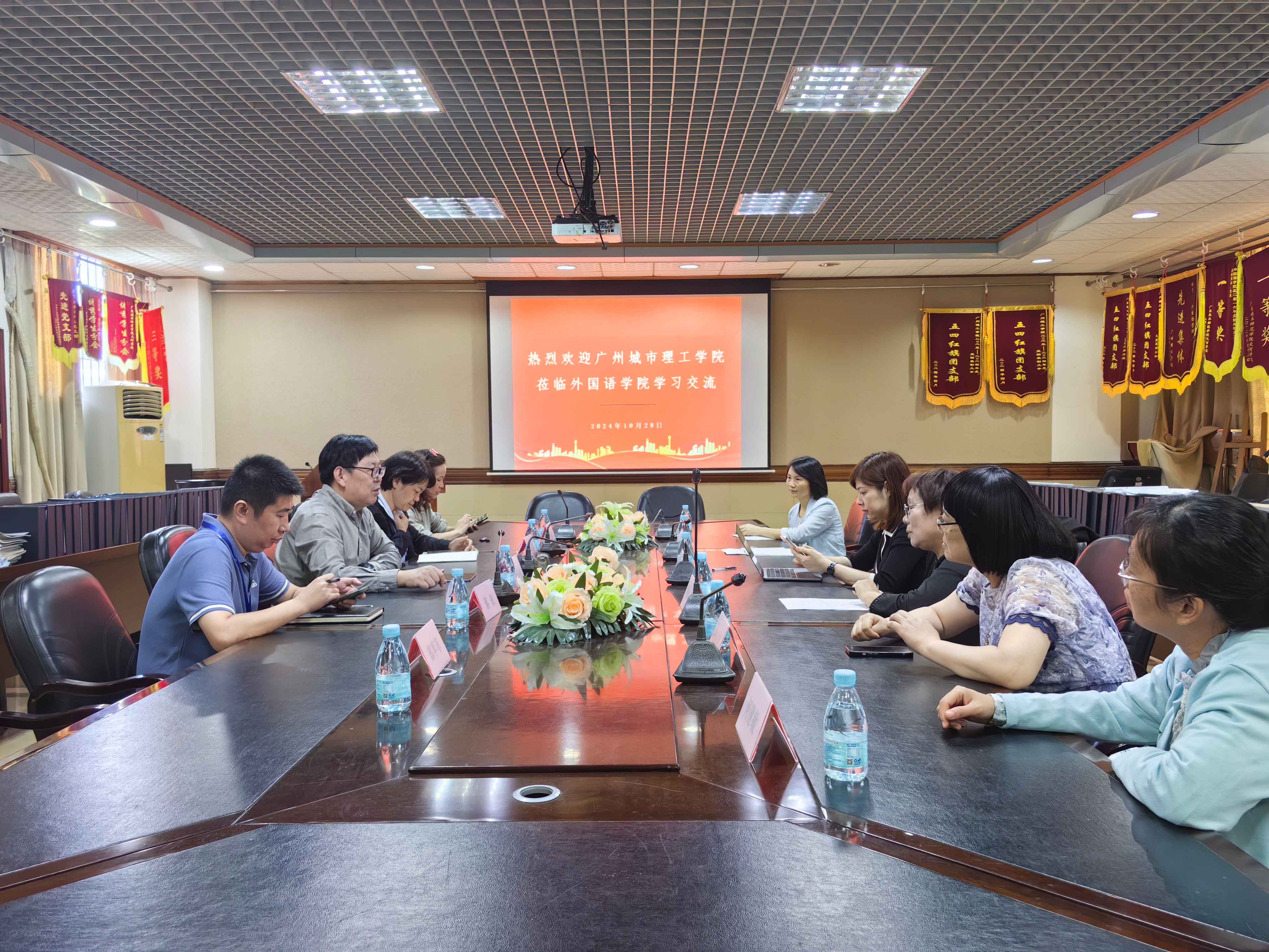 本网讯(记者 张佳佳 余潇潇)为深入推动大学英语教研室的教学合格评估进程,并确保新一轮课程教学改革在大学英语教学中的稳健实施,10月28日,外国语学院大学英语教研室主任余潇潇带领团队前往广州理工学院外国语学院进行访问交流。此次访问的目的是交流本科教学合格评估的准备工作,相互借鉴经验,并共同探讨大学英语教学改革的发展方向。广州理工学院外国语学院的领导对此次访问表示热烈欢迎,副院长兼党委书记冉海涛、党总支副书记蔡俊、副院长冯军霞以及大学英语部教学主任董华等出席了交流座谈会。