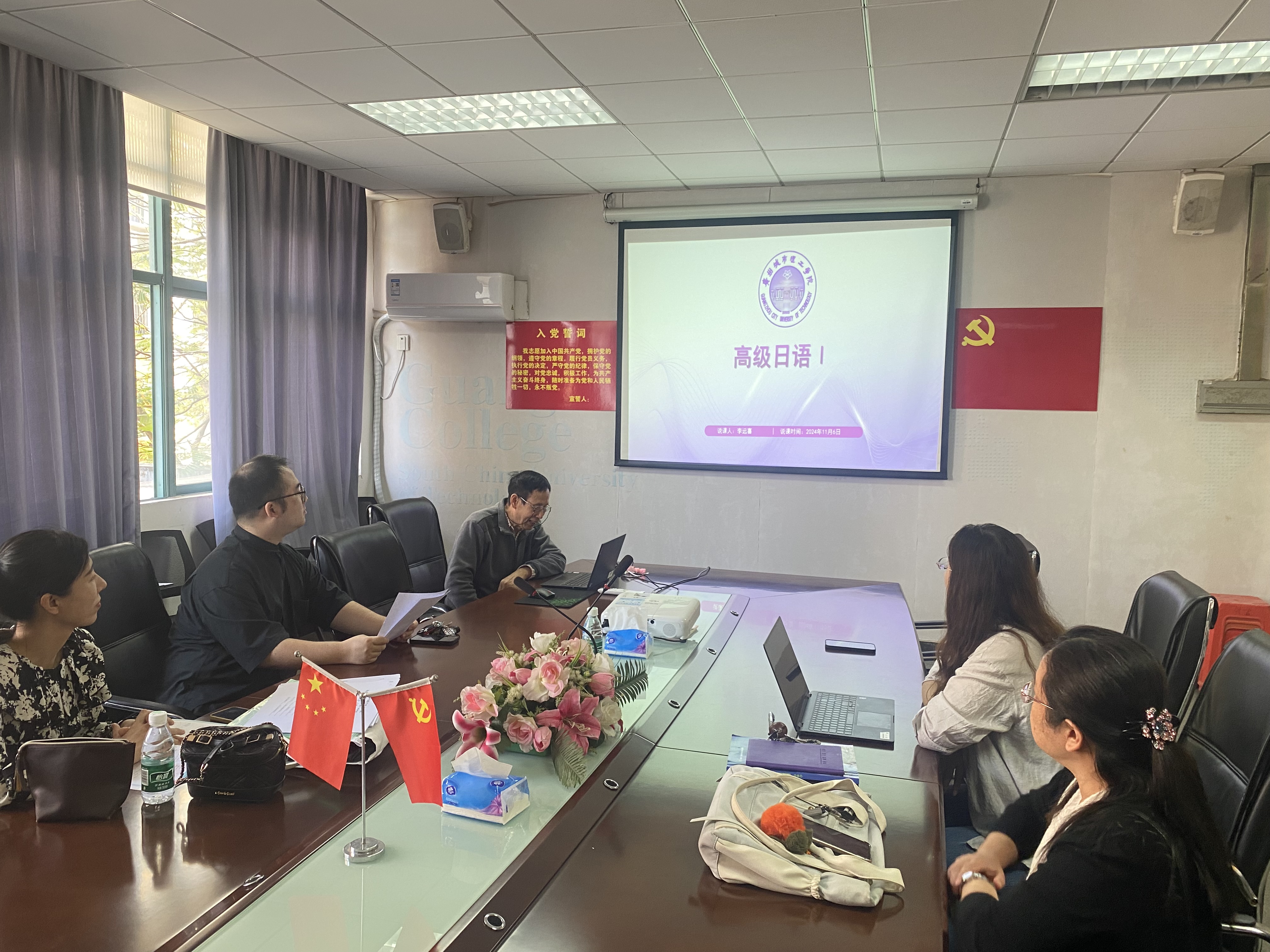 乔铭老师概述《第二外语II》课程建设,采用情景教学、任务型教学、多媒体教学等教学方法,规划课堂上的各种教学活动,如角色扮演、小组讨论、演讲、写作练习等,让学生了解和体验日本文化。