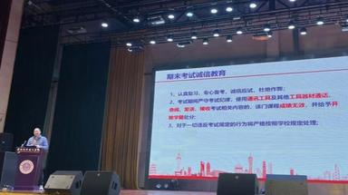 会议伊始,袁善福详细阐述了期末考试的考风考纪要求。他强调,诚信是学术的灵魂,是每一位学子应坚守的原则。期末考试不仅是对学生学习成果的检验,更是对个人品德修养的考验,每个同学都应坚守诚信底线,自觉抵制任何形式的作弊行为,共同维护公平公正的考试环境。此外,他还鼓励学生们树立正确的学习态度,注重平时的学习积累,避免临时抱佛脚。