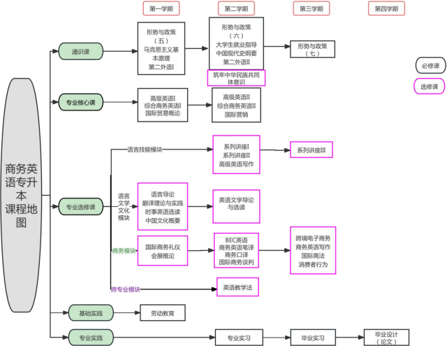 3.跨学科交叉课:跨境电子商务、英语教学法 4.竞教结合课:国际商务谈判