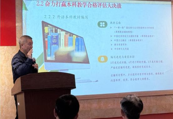 会议伊始,钟书能回顾了2024年外国语学院取得的主要成绩,并详细分析了当前学院发展面临的形势和任务。他强调,合格评估工作是学院提升教学质量、加强内涵建设的重要契机,全体教职工要高度重视,以饱满的热情和务实的态度投入到评估工作中去。