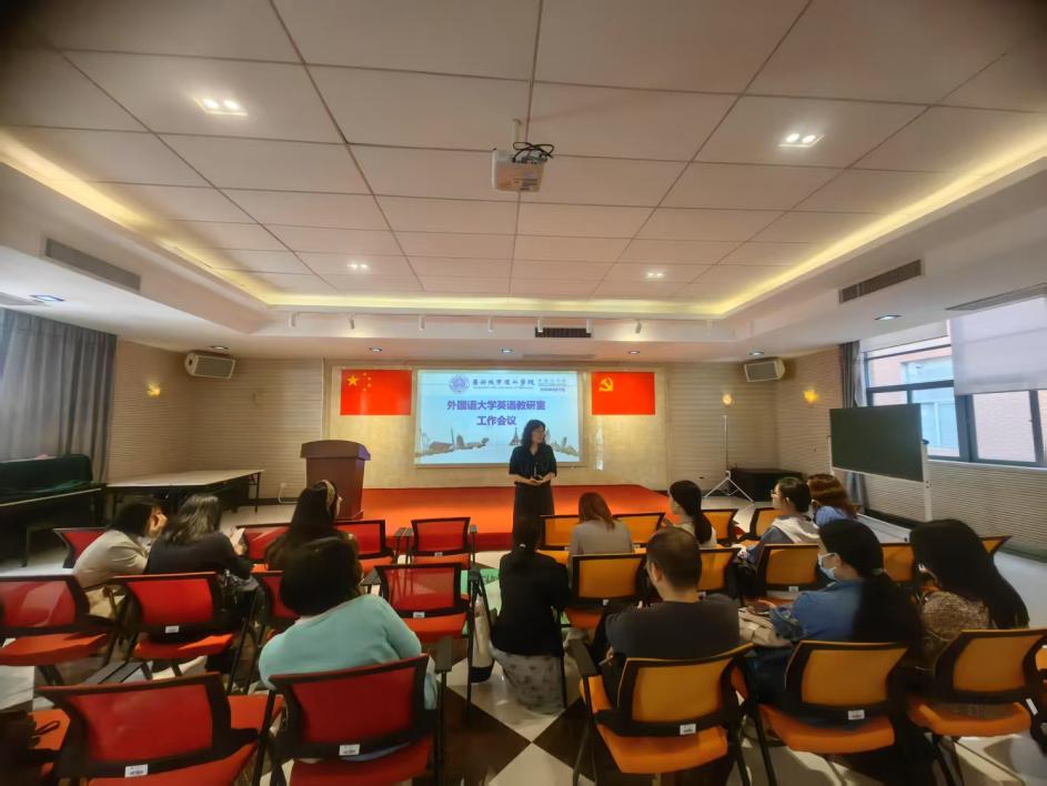 会议伊始,余潇潇提出教研室在2024年秋季开始实施"三维促学促考":一是依托高考英语成绩实施博学、慎思、明辨、笃行四级分层教学,精准匹配各层级学生需求;二是强化U校园监管+中宇智慧检测的智能平台督学功能;三是组建专业督导团队,实施"教学诊断-反思改进-跟踪评估"的磨课工程。几个月以来老师们齐抓共管的教学效果显著,其中博学班和慎思班学生的初次四级考试平均通过率超过50%,接下来将在保证继续督促博学慎思班备考学生持续发力的基础上,鞭策明辨班的学生迎头赶上。此外,本学期在延续之前做法的基础上,要求教师每周四下午开展四级专题集体备课,共享教学资源、分享教学模式,实现共同进步。
