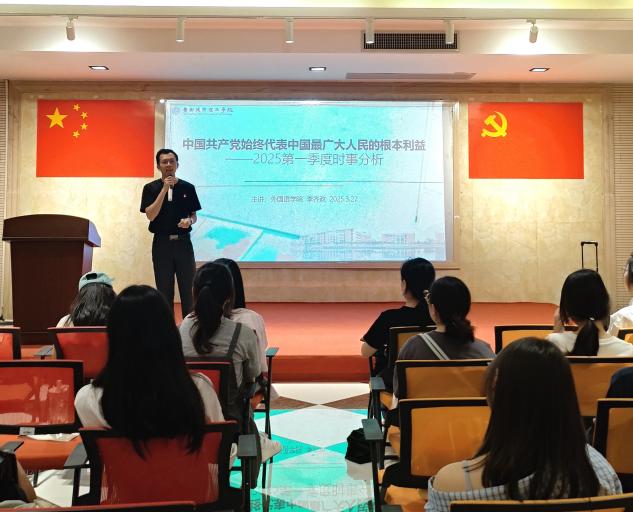 在党课第二场培训中,外国语学院党总支组织委员李齐政以2025年第一季度时事热点为切入点,作了题为《为什么中国共产党始终代表中国最广大人民的根本利益》的专题党课。他首先通过深入剖析当前国际国内热点事件,帮助同学们准确把握世界格局的深刻变化,引导大家思考国际关系发展新趋势。授课过程中,他不仅运用详实的数据和案例进行多维度解读,更通过中美两国在经济建设、教育发展、民生保障等领域的系统对比,深刻阐释了中国共产党赢得民心的根本原因。党课以事实为依据,用数据说话,有力论证了"中国共产党始终代表中国最广大人民的根本利益"这一重要论断。