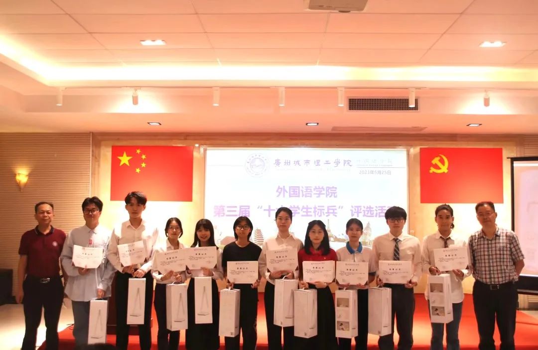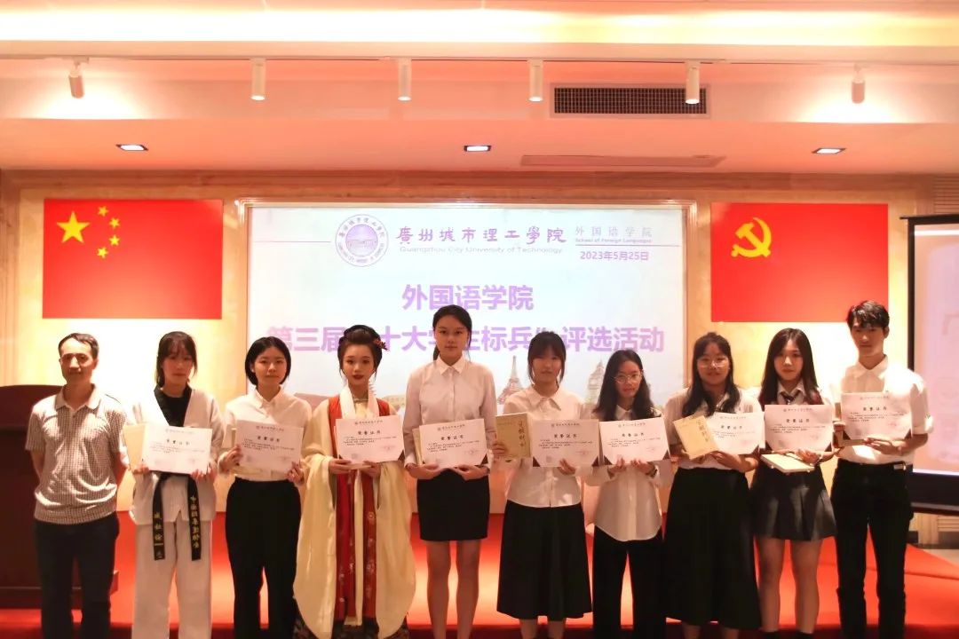 为深入贯彻党的二十大精神,大力培养和弘扬社会主义核心价值观,树立一批勤奋学习、不畏困难、勇于进取的学生先进典型,外国语学院特此开展“十大学生标兵”评选活动。通过学生自主报名,学工办初审筛选,最终产生30名候选人分别竞选十项标兵称号,并于5月25日下午在A6-201,通过候选人展示、答辩,评委评审,评选出最终的十名标兵。莅临本次活动的评委老师分别是:商务英语教研室侯松山教授、大学英语教研室朱必前教授、日语教研室杨丹副教授、英语专业教研室姜洪良老师,以及学生工作办公室全体辅导员老师。