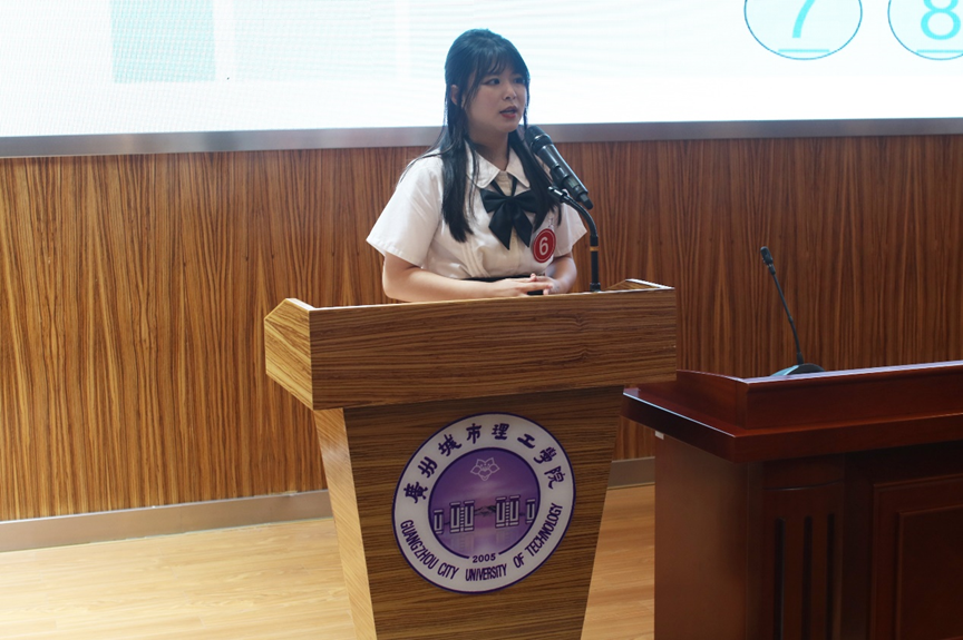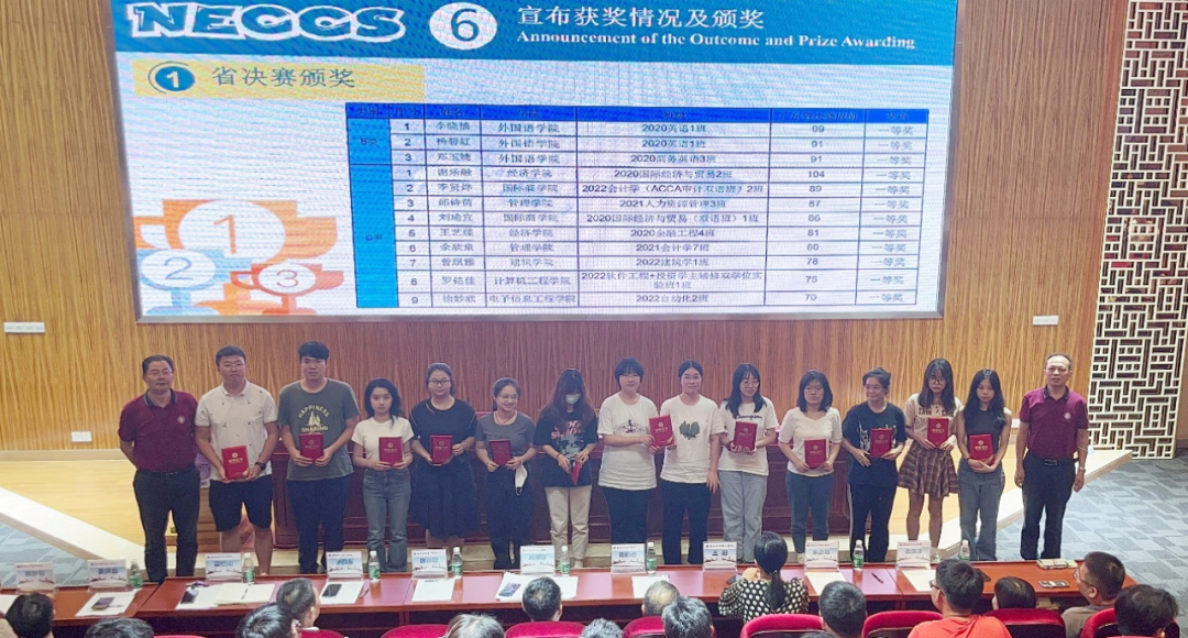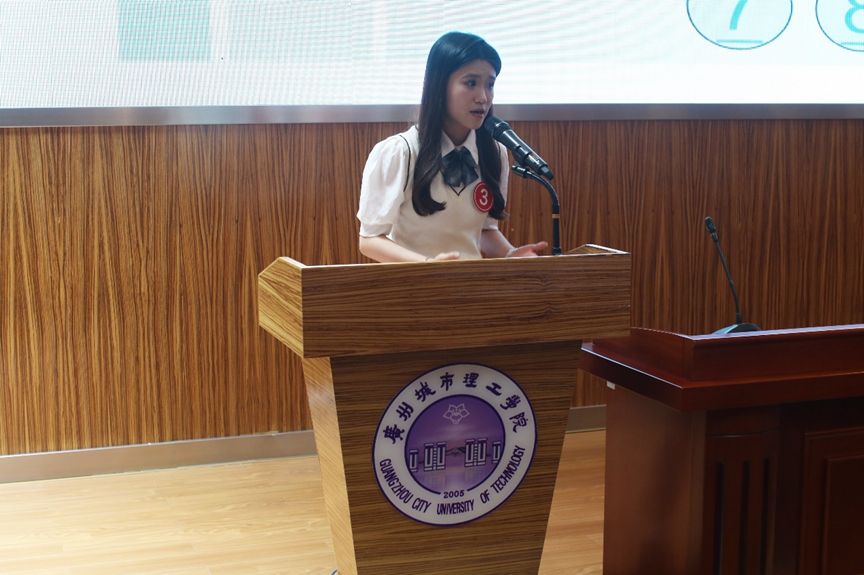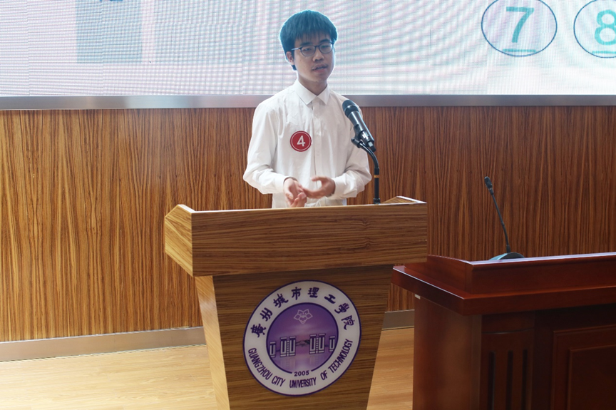 接下来,主持人先是详细介绍了全国大学生英语竞赛(NECCS)的背景信息:学校共有1997人参加了5月7日的校内初赛。其中,有12人晋级6月3日的NECCS广东省决赛(笔试);有307人晋级5月18日的朗诵比赛;有60人晋级5月25日的演讲初赛;有12人晋级6月20日的演讲决赛。