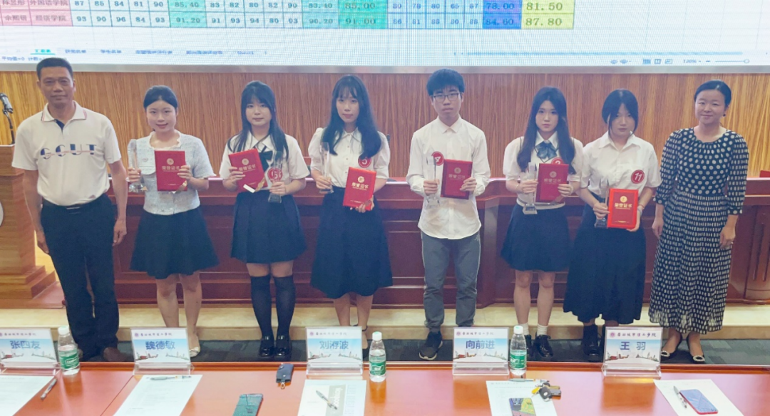 接着由学院党总支张四友书记、校团委王羽书记为演讲决赛三等奖获得者何诗婷、杨冰玉、陈昱彤、胡先妍、成祉谕、黄柏威颁发获奖证书。