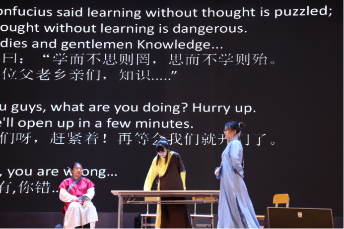 这是一个舞台,当灯光亮起,穿越时间的维度所进入的是思维空间之上的精神共振,艺术同频。对于我们的外语爱好者和戏剧爱好者来说,12月确实是期待已久的月份。本次大赛在主持人用日语和英语的隆重的介绍下拉开了帷幕。