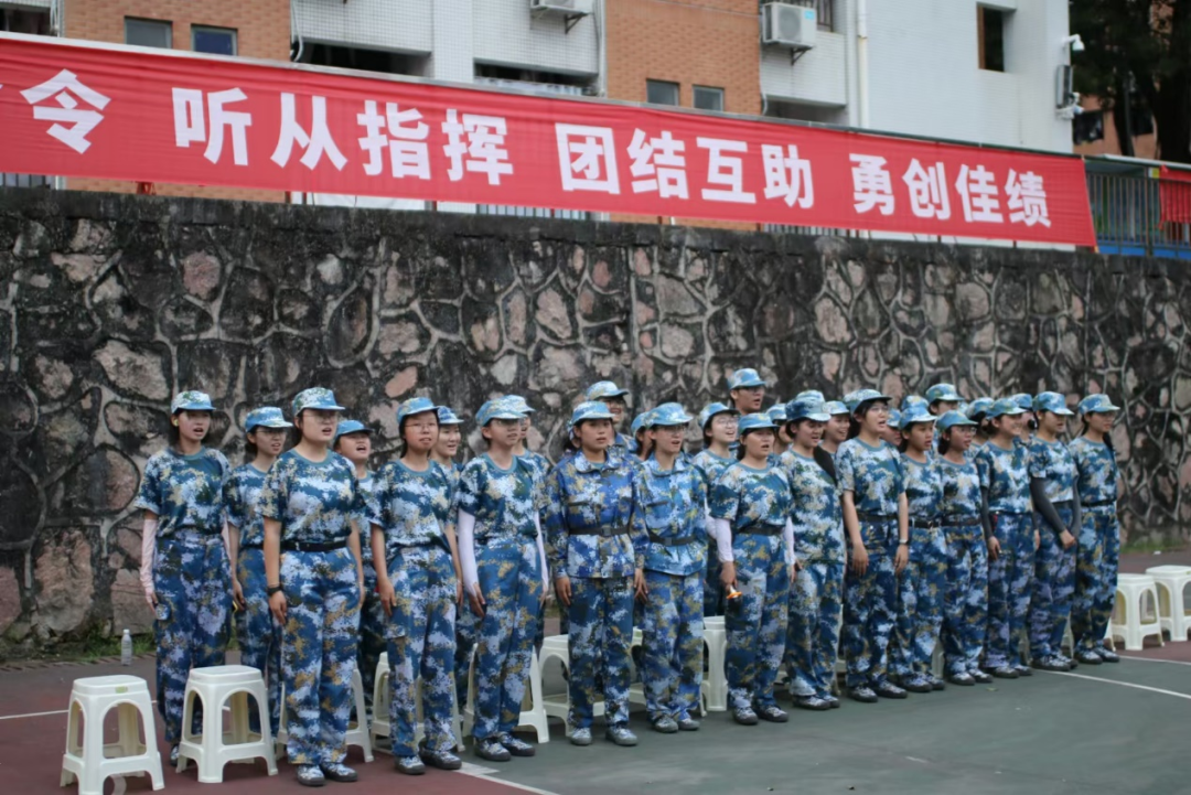 外国语学院24级本科新生的同学们身着整齐的军训服,用嘹亮的歌声表达着对革命历史的敬仰和对新时代的热爱。