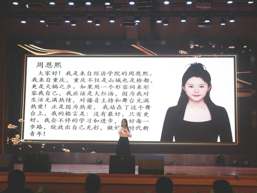 决赛现场星光熠熠,来自全校的14位校园主持新秀齐聚一堂,与现场的师生观众共同分享了精彩的语言魅力与青春风采。选手们通过“个人展示”“即兴评述”“搭档主持”等环节,全方位展示了他们的知识储备与舞台素养。