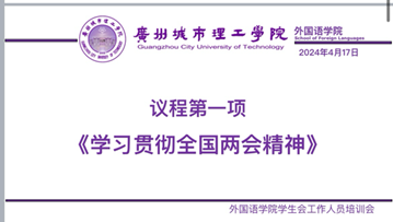 本网讯(记者 豆芹兰、吕洁茵)为深入学习总书记在2024年全国两会期间发表的系列重要讲话,引领青年学生坚定不移跟党走,加强学生会思想建设,进一步深化新时代高校学生会改革和建设,响应广东学联学生会2024春季重点工作任务,不断提升同学满意度、大局贡献度和社会认可度,外国语学院团委、学生会于4月17日晚展开了2024年春季学期培训。