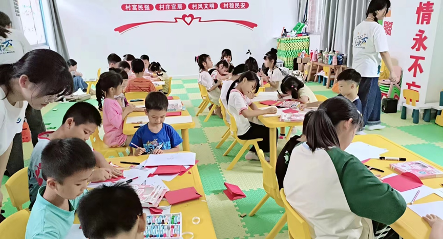 本网讯(记者 豆芹兰、李浣淇、温喜娇)外国语学院共建“幸福九潭”实践团,7月18日到20日在九潭村“小站家”为5-12岁的小朋友们,进行了第二轮的六门美育课程教学。