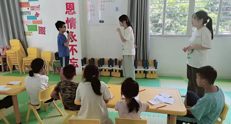 本网讯(记者 豆芹兰、温喜娇、李浣淇)外国语学院共建“幸福九潭”实践团,7月24日到26日在九潭村“小站家”为5-12岁的小朋友们,进行了第四轮的六门美育课程教学。