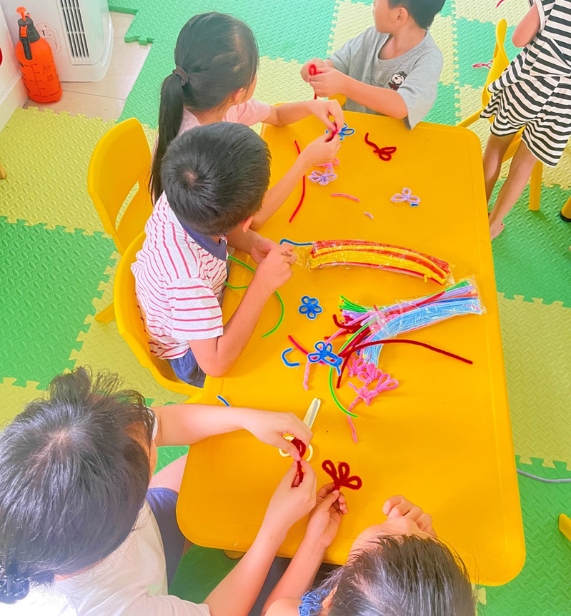 7月26日上午,我们来到了九潭村“小站家”,由实践团成员邬曼琪和唐莹莹两位授课老师为小朋友们带来了主题为“制作团扇”的手工制作益学课堂。本次课程目的是通过传统手工艺的学习与实践,让小朋友们深入感受中国传统文化的魅力,体验团扇制作的乐趣。授课老师引导小朋友们进行两面扇面的创作,他们的作品各具特色,有的五彩缤纷,有的华丽繁复,充分体现了他们的创意和才华。