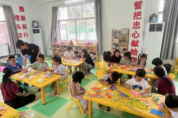 本网讯(记者 豆芹兰、温喜娇)2024年秋季学期的10月至12月每周日志愿者们继续在九潭村“小站家”开展内容丰富的美育课程活动,本学期我们迎来了邬曼琪、刘玉婷、林泽仪、伏润珍等八名优秀的志愿者加入了课程志愿活动。为推动美育课程支教活动的顺利进行,活动正式开展前对课程志愿者们进行相关内容培训,详细介绍九潭村美育课程活动的背景、计划与课程安排以及注意事项等。同时,我们也有幸请来“小站家”项目初期的负责人方映纯师姐以及2024年7月暑期三下乡队员郑美婷同学分享支教经验。在培训过程中我们播放往期课程回顾的时候,每位志愿者都聚精会神的观看影片并且深有感触。