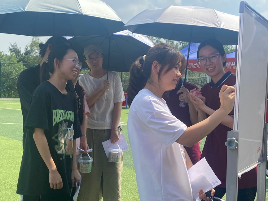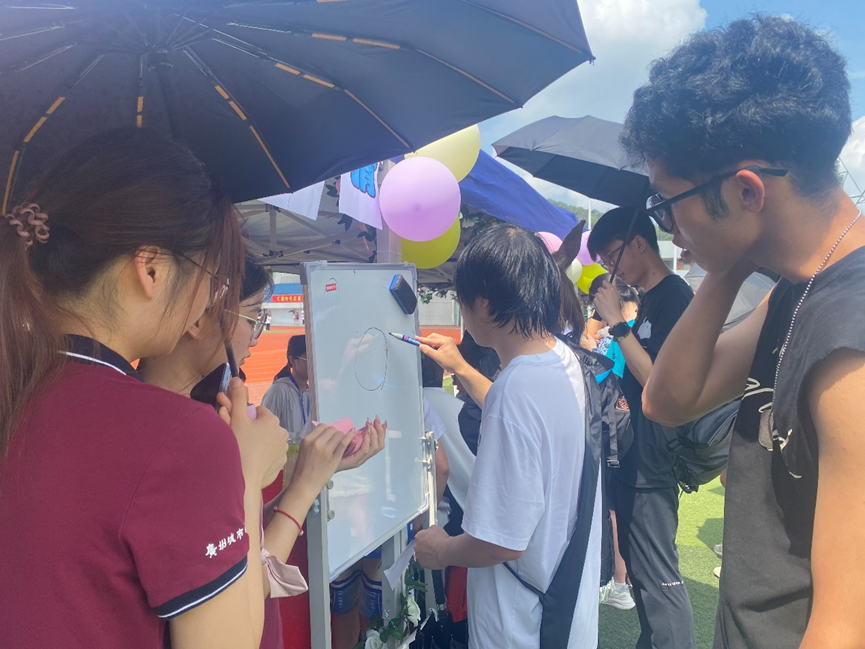 随着夕阳渐渐西下,心理游园会也接近尾声。外国语学院的摊位依旧热闹非凡,同学们依依不舍地离开,心中充满了对这一天美好回忆的留恋。通过这次“你画我猜”游戏,不仅锻炼了同学们的团队协作能力和创造力,更让大家在轻松愉快的氛围中释放压力,增进彼此之间的情感。